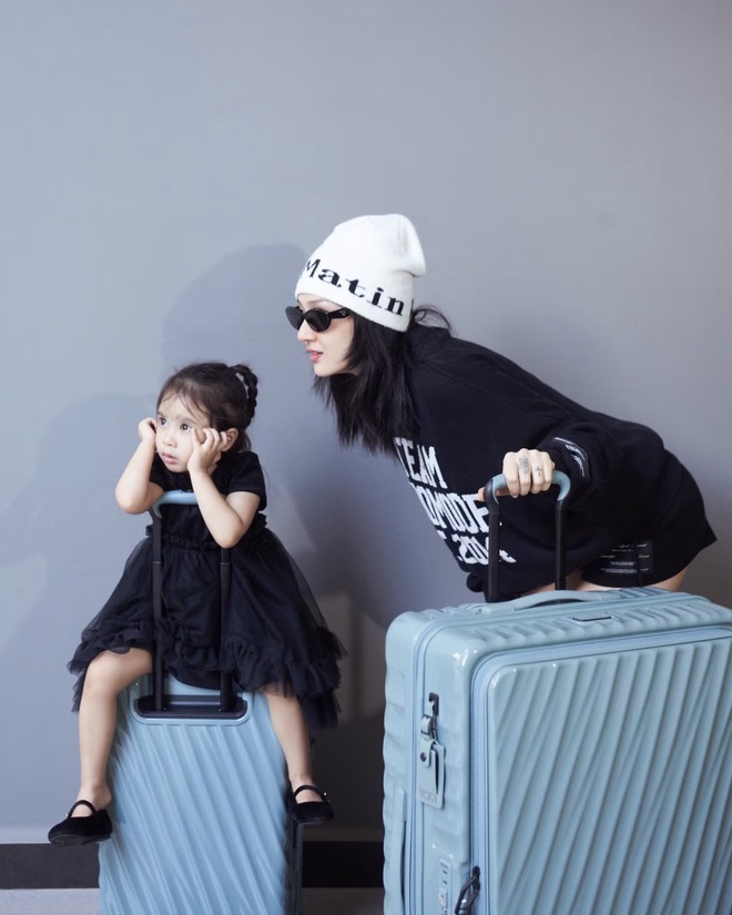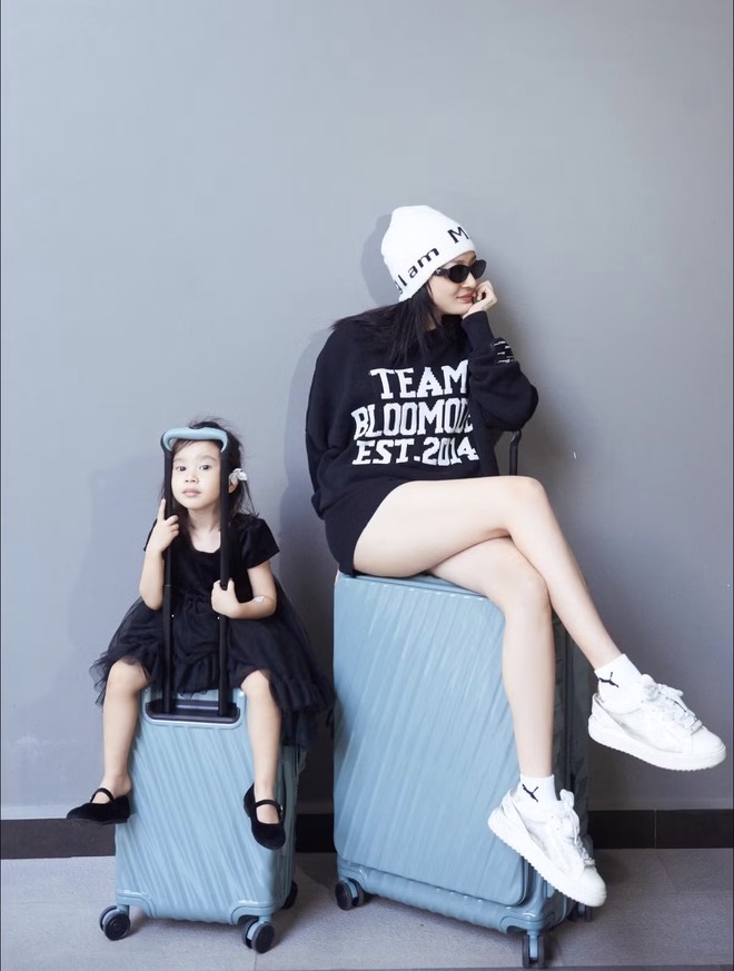 Nữ ca sĩ Bảo Anh và con gái nhỏ. |