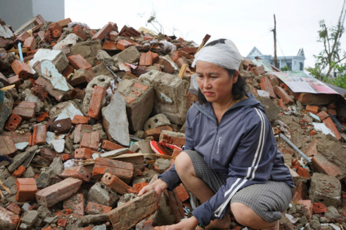 Bà Nguyễn Thị Liêu (SN 1977), thôn Phượng Mao, xã Hoằng Giang, bị thương ở đầu do nhà sập sau trận lốc xoáy. |