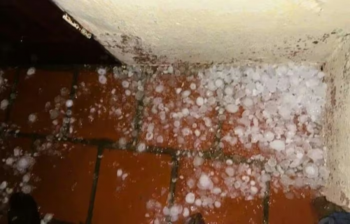 Hình ảnh mưa đá xuất hiện trong đêm 17-4 tại phường Hàm Rồng, tỉnh Thanh Hóa |