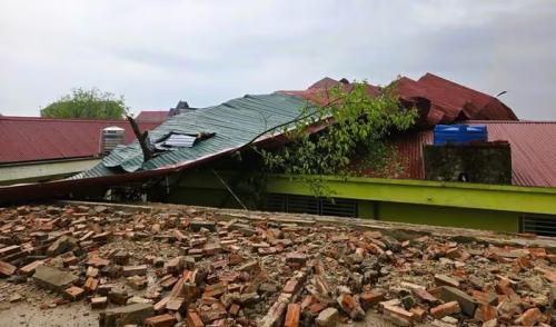 Mưa dông khiến khiến mái tôn, hệ thống chữ ở Trường Mầm non Thiệu Dương... |