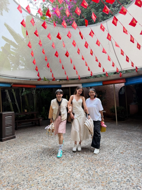 Yaya Urassaya đi cùng mẹ và stylist lâu năm. Cả ba cùng thưởng thức nhiều món ngon như gà nướng mẹt, thịt nướng, bánh ướt cuốn thịt, bún mọc... Yaya Urassaya uống cà phê và đi dạo trên nhiều cung đường, ngõ ngách tại TP.HCM.