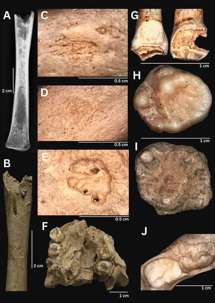 Các phần xương và răng trên các bộ hài cốt trẻ em cho thấy dấu hiệu giống tổn thương do bệnh giang mai - Ảnh: ĐẠI HỌC CHARLES STURT |