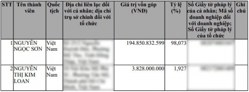 Năm 2019, vốn điều lệ của Ngọc Thẩm Jewelry ghi nhận ở mức 110 tỷ đồng. Trong đó, ông Nguyễn Ngọc Sơn góp 108,878 tỷ đồng (tương ứng 98,98% cổ phần) và bà Nguyễn Thị Kim Loan góp 1,122 tỷ đồng (tương ứng 1,02% cổ phần còn lại).