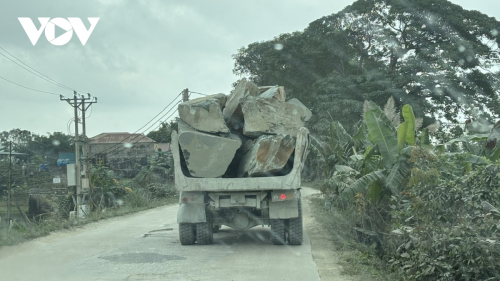 Xe tải chở đá qua đường liên xã ở Thanh Hóa |