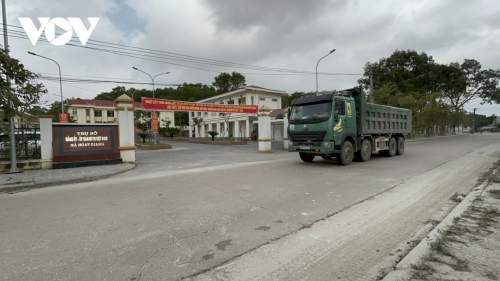 Xe tải trọng lớn chạy qua cơ quan công quyền xã Hoạt Giang, Thanh Hóa. |