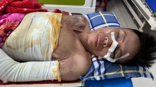 Nhìn cha quằn quại với cơn đau rát từ các vết bỏng, em Nguyễn Thảo Chinh (sinh năm 2000, con đầu của ông Chương) chực trào nước mắt. Từ ngày mẹ bỏ đi, hơn 10 năm qua, ông Chương một mình gồng gánh nuôi 4 con nhỏ. Dù thường xuyên đau ốm, ông vẫn kiên trì lao động, mong con được ăn học đàng hoàng. Hiện em Chinh đang vay mượn khắp nơi để trang trải chi phí điều trị cho cha.