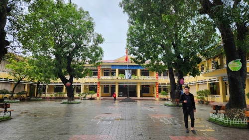 Trường Tiểu học Nguyễn Trãi, nơi có nhiều trường hợp học sinh xuất hiện tình trạng nôn ói ngay ở bữa ăn bán trú. |