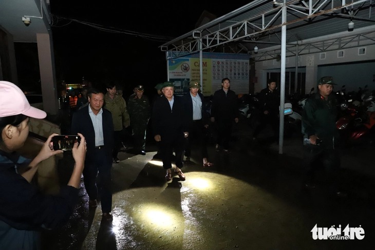 Rạng sáng 22-11, Phó thủ tướng thường trực Nguyễn Hòa Bình thăm hỏi, động viên nhóm cứu hộ tình nguyện từ Quảng Ngãi vào tăng cường cho tỉnh Đắk Lắk - Ảnh: TRUNG TÂN |