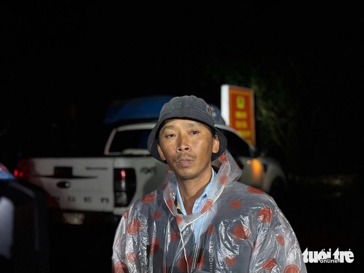 Đôi mắt anh Lý Văn Đường đỏ hoe vì nhiều giờ cùng nhóm tình nguyện vật lộn với sóng gió tìm xác cha trong vô vọng - Ảnh: MINH PHƯƠNG |