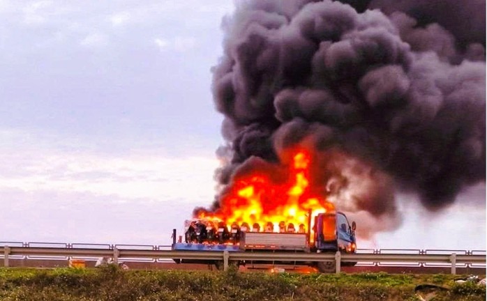 Vào thời điểm trên, ô tô tải BKS 29H-842.29 do lái xe Trương Văn Trọng (SN 1988, ngụ xã Quỳnh Hợp, tỉnh Nghệ An điều khiển, trên thùng xe chở nhiều xe máy ra Hà Nội, khi lưu thông đến đoạn km trên thì bất ngờ bốc cháy dữ dội.