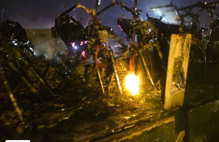 Nhiều xe máy cháy trơ khung trên thùng xe tải |