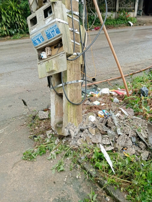Ô tô lao sang hướng ngược chiều va vào tường nhà dân rồi tông gãy cột điện sau tai nạn |