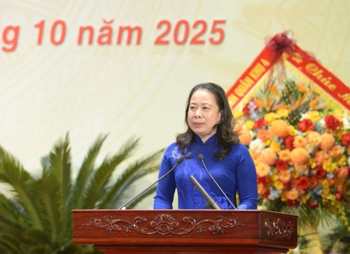 Phó Chủ tịch nước Võ Thị Ánh Xuân cũng chúc mừng những thành tựu mà Đảng bộ, chính quyền, quân và dân các dân tộc tỉnh Thanh Hóa đã đạt được trong những năm qua.