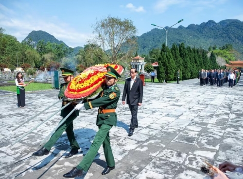 Phó Chủ tịch Quốc hội, Thượng tướng Trần Quang Phương và các thành viên Đoàn công tác dâng hoa, dâng hương tại Nghĩa trang liệt sĩ quốc tế Đồng Tâm tại xã Thiết Ống, Thanh Hóa |