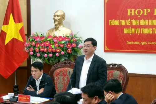 Ông Mai Xuân Liêm, Phó Chủ tịch UBND tỉnh Thanh Hóa phát biểu tại cuộc họp báo. Ảnh: ĐẶNG TRUNG |