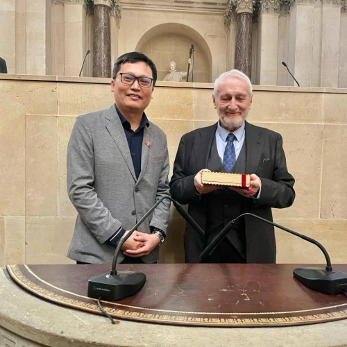 PGS-TS Nguyễn Tuấn Cường, nhà ngữ văn học và Viện trưởng Viện nghiên cứu Hán Nôm, đã được bầu vào vị trí Viện sĩ Thông tấn nước ngoài của Viện Hàn lâm Văn khắc và Mỹ văn, một trong năm Viện hàn lâm thành viên của Viện Pháp. Ảnh: Đại sứ quán Pháp |