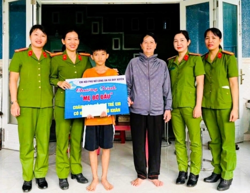 Chi hội Phụ nữ Công an xã Duy Xuyên nhận đỡ đầu cho em Thắng. |