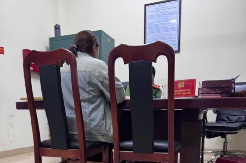 Nữ nhân viên H. tại đồn công an khu vực ngày 6/10.