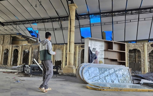 Một phần bức tường và mái nhà bị sập đè trúng một công nhân xây dựng. |