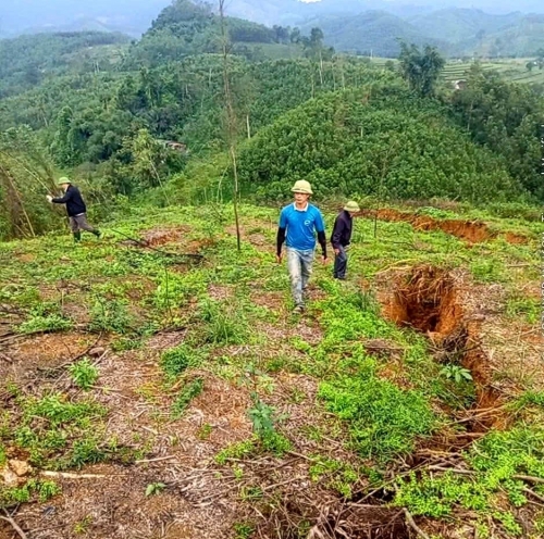 Từ chiều 15/11, tại khu vực đồi núi ở thôn Quyết Thắng, xã Sơn Kim 2, tỉnh Hà Tĩnh, xuất hiện vết nứt dài khoảng 150m. Ngọn đồi cao khoảng 50m, đã bị sụt lún 80cm, thậm chí có nơi bị sụt tới 1m, tạo nên rãnh sâu.