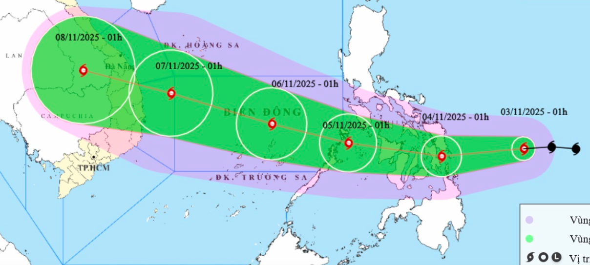 Sáng 3-11, bão Kalmaegi tiếp tục mạnh lên 2 cấp so với cuối giờ chiều qua, dự báo hướng đổ bộ vào miền Trung.