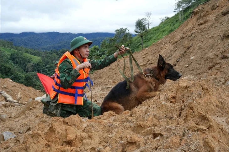 100 bộ đội biên phòng dẫn chó nghiệp vụ tìm kiếm 2 nạn nhân bị vùi lấp ở Đà Nẵng