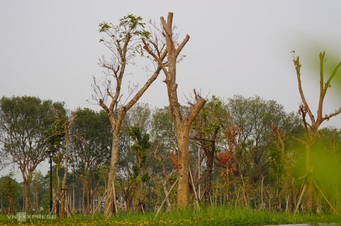 Hàng trăm cây xanh tại công viên Hội An, phường Hạc Thành đã chết khô hoặc héo rũ sau hơn một năm địa phương chi hơn 155 tỷ đồng cải tạo.