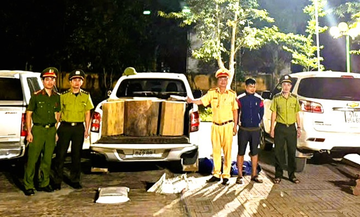 Công an Thanh Hóa bắt ô tô chở gỗ trái phép