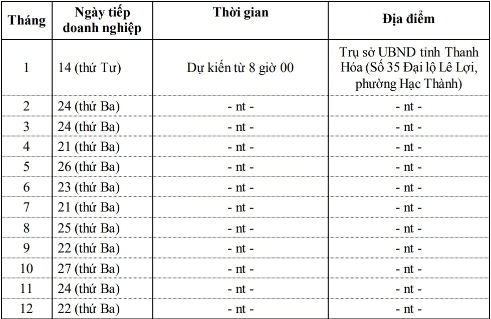 Thông báo lịch tiếp doanh nghiệp của Chủ tịch UBND tỉnh năm 2026