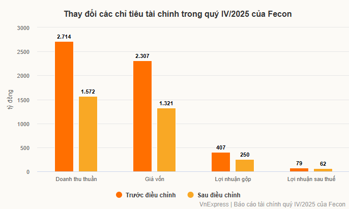 Công ty xây dựng Fecon đính chính doanh thu quý cuối năm ngoái từ 2.714 tỷ đồng giảm còn 1.572 tỷ đồng vì "sai sót trong quá trình in ấn".