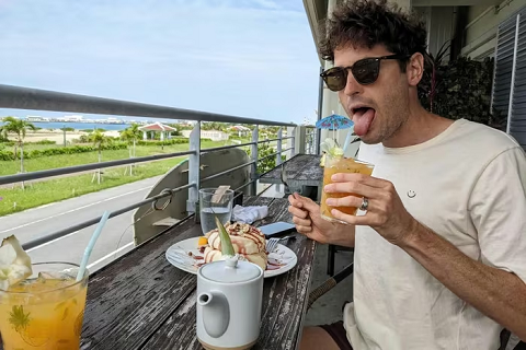 Du khách Anh thích thú khi có thể lái xe máy trên đường và có thể uống cà phê mọi lúc mọi nơi.