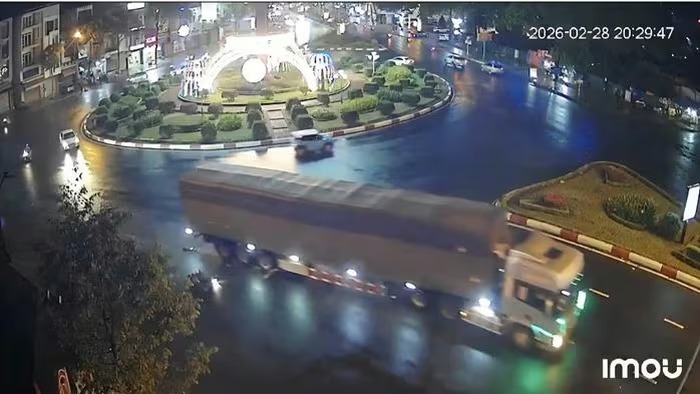 Khi đến khu vực vòng xuyến, xe container chuyển hướng không đúng quy định gây tai nạn giao thông khiến một người chết, một người bị thương.
