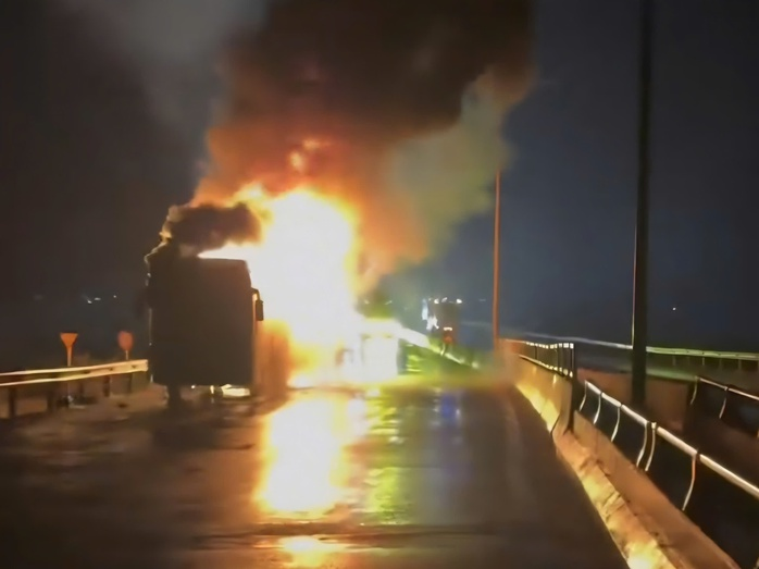 Xe khách giường nằm cháy ngùn ngụt trong đêm