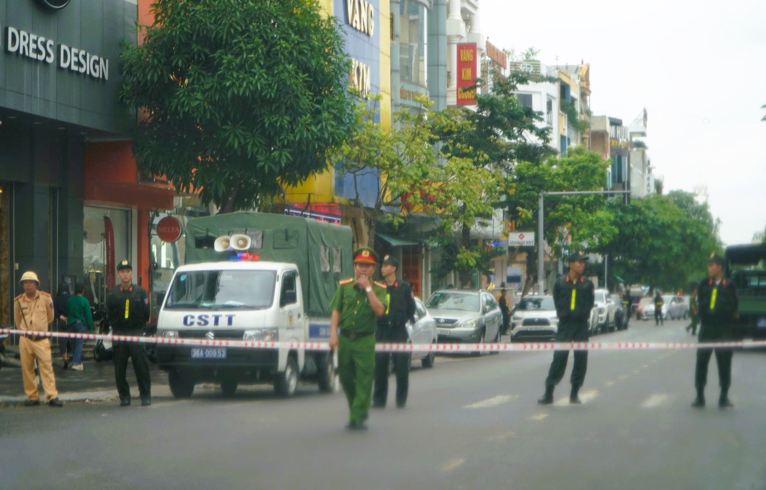 Hàng chục cảnh sát thuộc nhiều lực lượng đã tiến hành ngăn đường, thực hiện nhiệm vụ tại khu phố có nhiều tiệm vàng lớn nhất ở Thanh Hóa