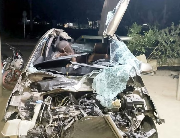 Thanh Hóa: Ô tô bị vò nát, biến dạng khi tông lan can trên đường Hồ Chí Minh