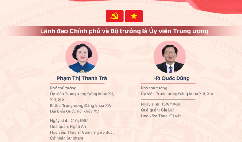14 thành viên Chính phủ tham gia Ban chấp hành Trung ương khóa 14, trong đó có 2 phó thủ tướng và 12 bộ trưởng, trưởng ngành.