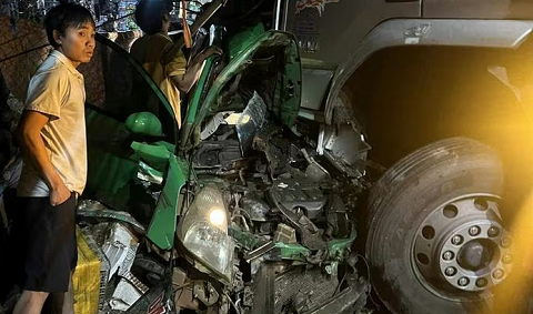 Xe tải tông bẹp đầu xe taxi, 3 người thương vong