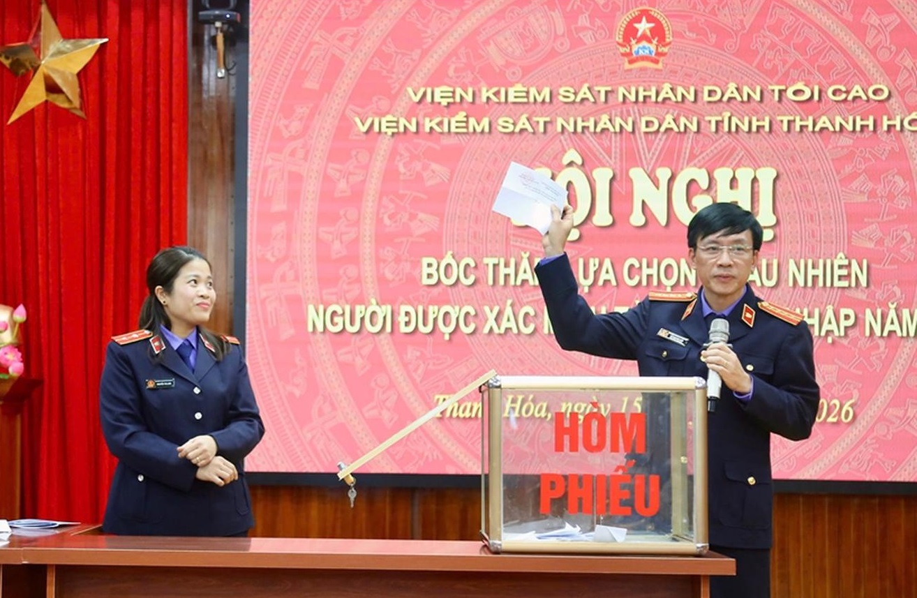 Chiều 15/1, thừa ủy quyền của Viện trưởng VKSND tối cao, Chánh Thanh tra VKSND tối cao Mai Thị Nam tham dự và chỉ đạo hội nghị bốc thăm lựa chọn ngẫu nhiên người được xác minh tài sản, thu nhập năm 2026 tại VKSND tỉnh Thanh Hoá.
