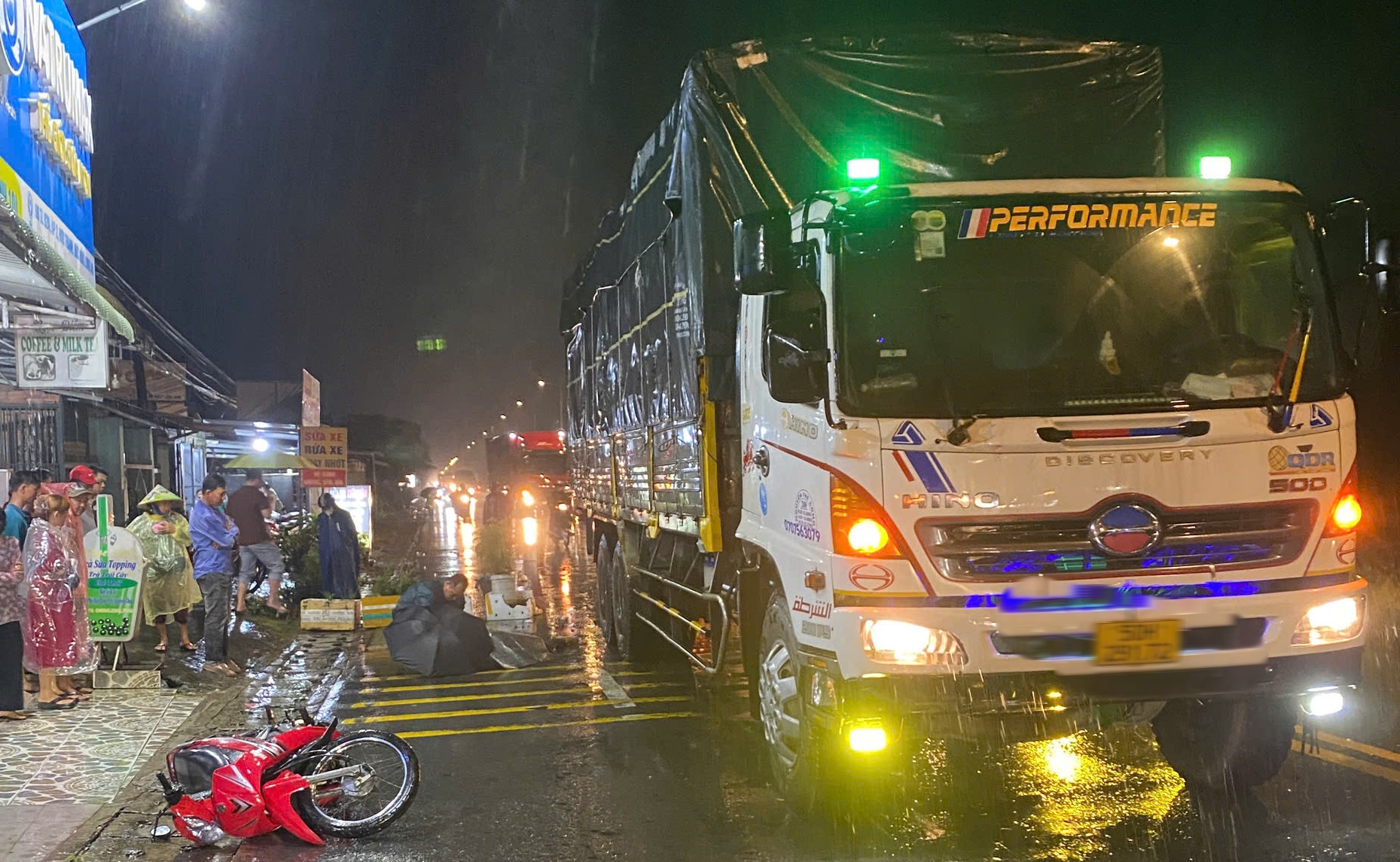 Cú va chạm khiến người đàn ông điều khiển xe máy ngã xuống đường và bị bánh trước xe tải cán qua người tử vong tại chỗ.