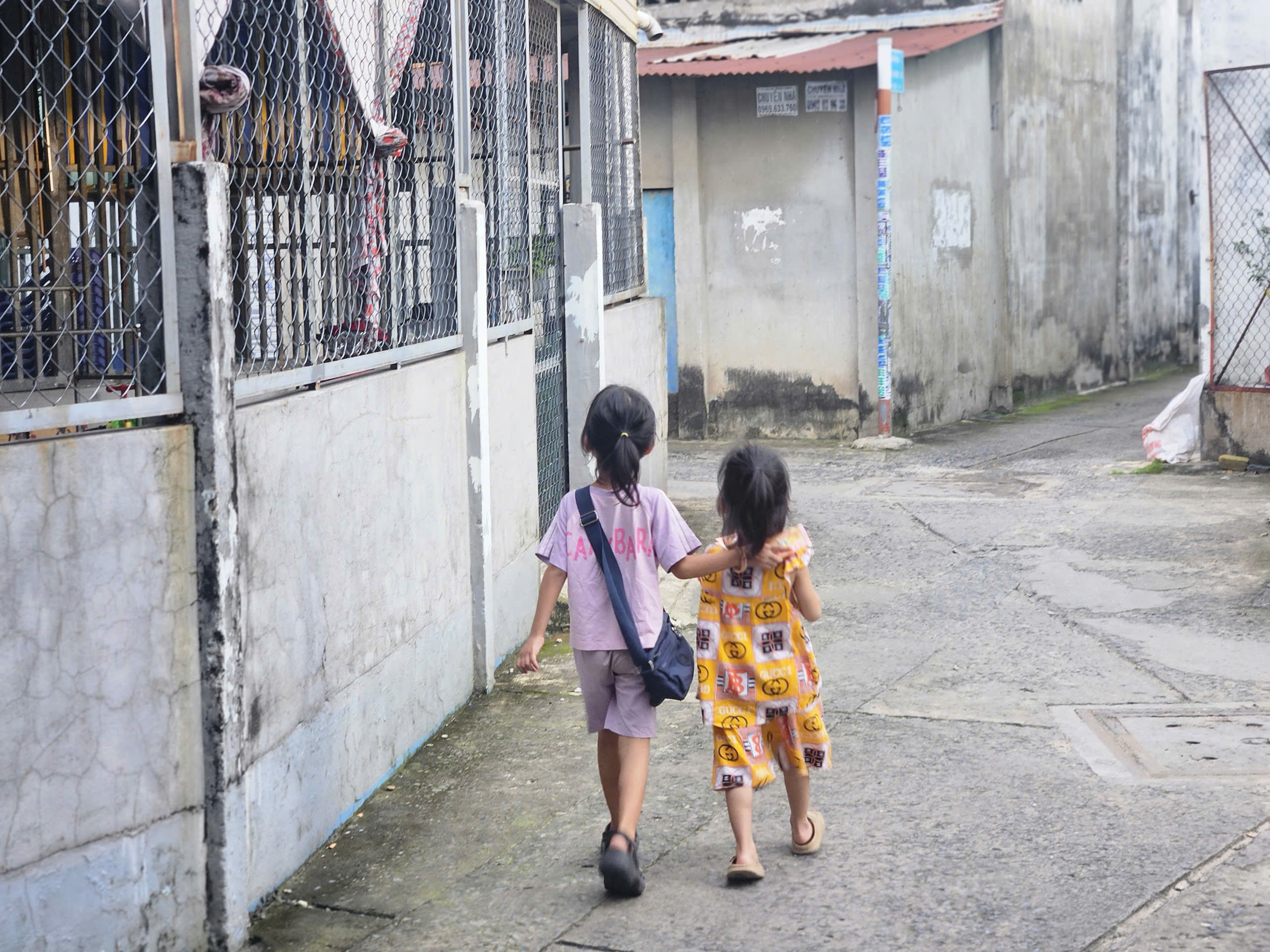 16 giờ tan học, Bảo Anh (8 tuổi) và An Nhiên (6 tuổi) nghỉ ngơi, chơi với em út một chút. Đến 17 giờ, 2 chị em đeo túi, đi bán vé số mưu sinh.