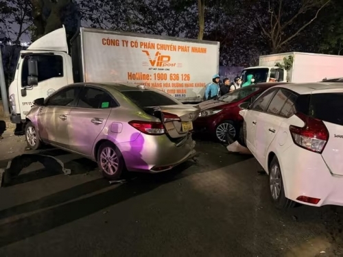 Theo một số người có mặt thời điểm xảy ra tai nạn, ít nhất 5 xe ô tô và 3 xe máy bị hư hỏng nặng, nhiều mảnh vỡ bắn khắp nơi. Trong đó, 1 người đi xe máy bị chiếc xe gây tai nạn húc từ phía sau lưng và bị thương nặng.