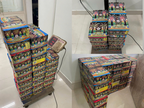 Tang vật thu giữ gồm 68 hộp pháo nổ đựng trong hai thùng carton, tổng trọng lượng 111,3kg, còn nguyên bao gói, chưa qua sử dụng; một điện thoại di động iPhone XS Max và một xe mô tô Airblade.