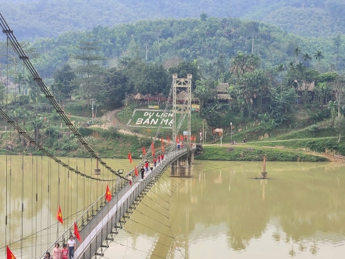 Cầu treo bắc qua sông Chu - “cầu nối” đưa Bản Mạ (xã Thường Xuân, tỉnh Thanh Hoá) từ bản làng biệt lập trở thành điểm du lịch cộng đồng hấp dẫn. Ảnh: Nguyễn Linh |