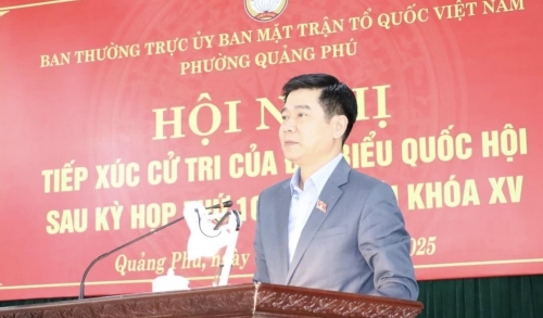 Đoàn ĐBQH tỉnh Thanh Hóa có Lê Thanh Hoàn, Ủy viên hoạt động chuyên trách Ủy ban Pháp luật và Tư pháp của Quốc hội; Lê Văn Cường, Tỉnh ủy viên, Giám đốc Sở Y tế Thanh Hóa; Cầm Thị Mẫn, đại biểu Quốc hội đã có buổi tiếp xúc cử tri phường Quảng Phú sau Kỳ họp thứ 10, Quốc hội khóa XV.