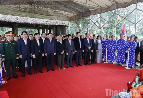 Trong không gian tĩnh lặng, linh thiêng của di tích, các lãnh đạo tỉnh Thanh Hóa đã thành kính dâng hương, tưởng niệm và bày tỏ lòng tri ân sâu sắc đối với công lao to lớn của các bậc tiền nhân đã có công dựng nước, giữ nước và gây dựng nền tảng lịch sử, văn hóa vẻ vang cho quê hương, đất nước.