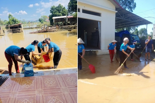 Nước vừa rút, bà con và đoàn viên thanh niên lập tức bắt tay vào dọn dẹp, tinh thần đoàn kết lan tỏa khắp thôn xóm. |