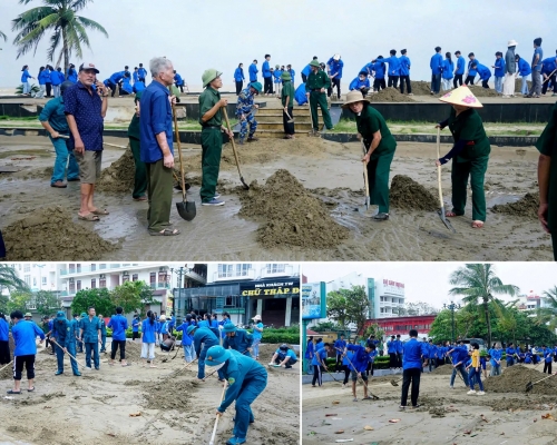 Tinh thần đoàn kết thể hiện rõ trong công tác dọn dẹp ngay sau khi nước rút |