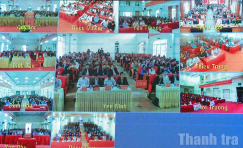 Hội nghị được nối trực tuyến đến các điểm cầu ở Thanh Hóa. Ảnh: Văn Thanh |