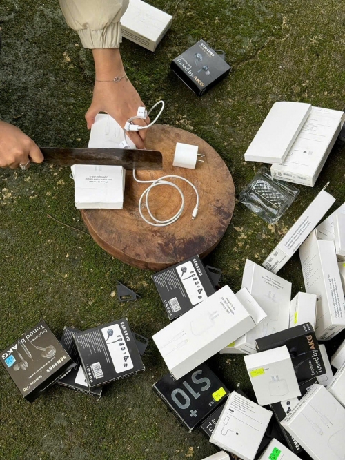 Lực lượng QLTT Thanh Hoá kiểm tra, phát hiện và tịch thu, tiêu huỷ sản phẩm thiết bị điện tử, điện thoại có dấu hiệu hàng giả. Ảnh: QLTT Thanh Hoá |