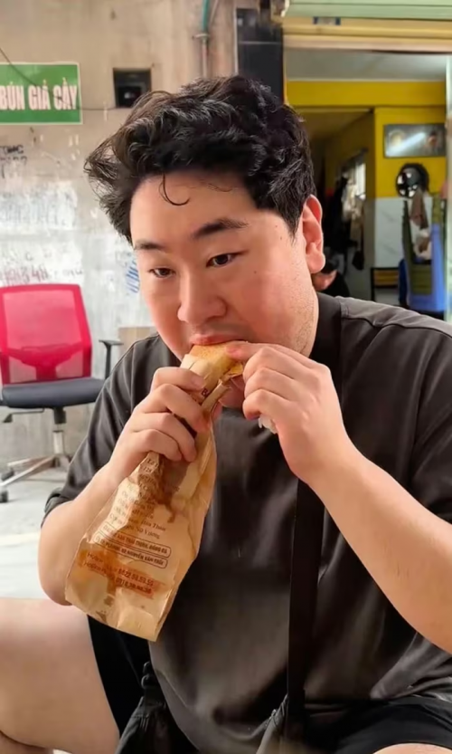 Với vị khách Hàn Quốc này, bánh mì không chỉ là món ăn nhanh mà là sự kết hợp hài hòa giữa nhiều yếu tố: lớp vỏ giòn, phần nhân đậm vị và rau thơm tươi. Trong số đó, bánh mì heo quay là món anh yêu thích nhất, đặc biệt là phần bì giòn khiến trải nghiệm trở nên trọn vẹn hơn.